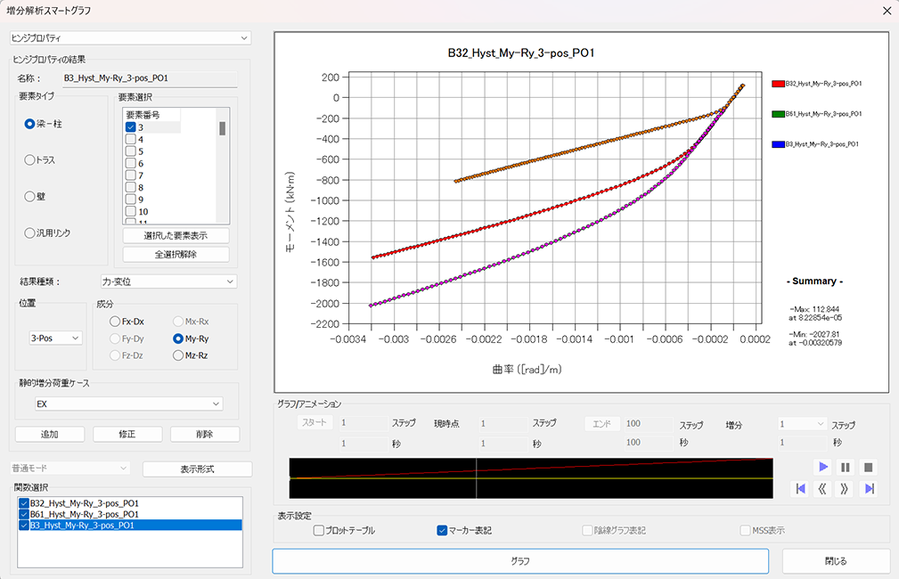 解析は初期状態において常時軸力と地震時転倒モーメントによる変動軸力を考慮した後、水平力と地盤変位を同時に漸増させた静的増分解析を行います。